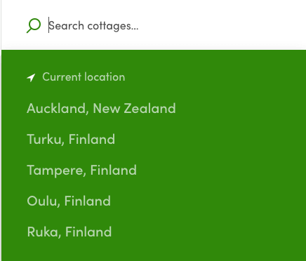 We want to change those since our CottageDays marketplace operates in different locations than Saunatime. Let's change the first suggestion: "Helsinki, Finland" to "Auckland, New Zealand".